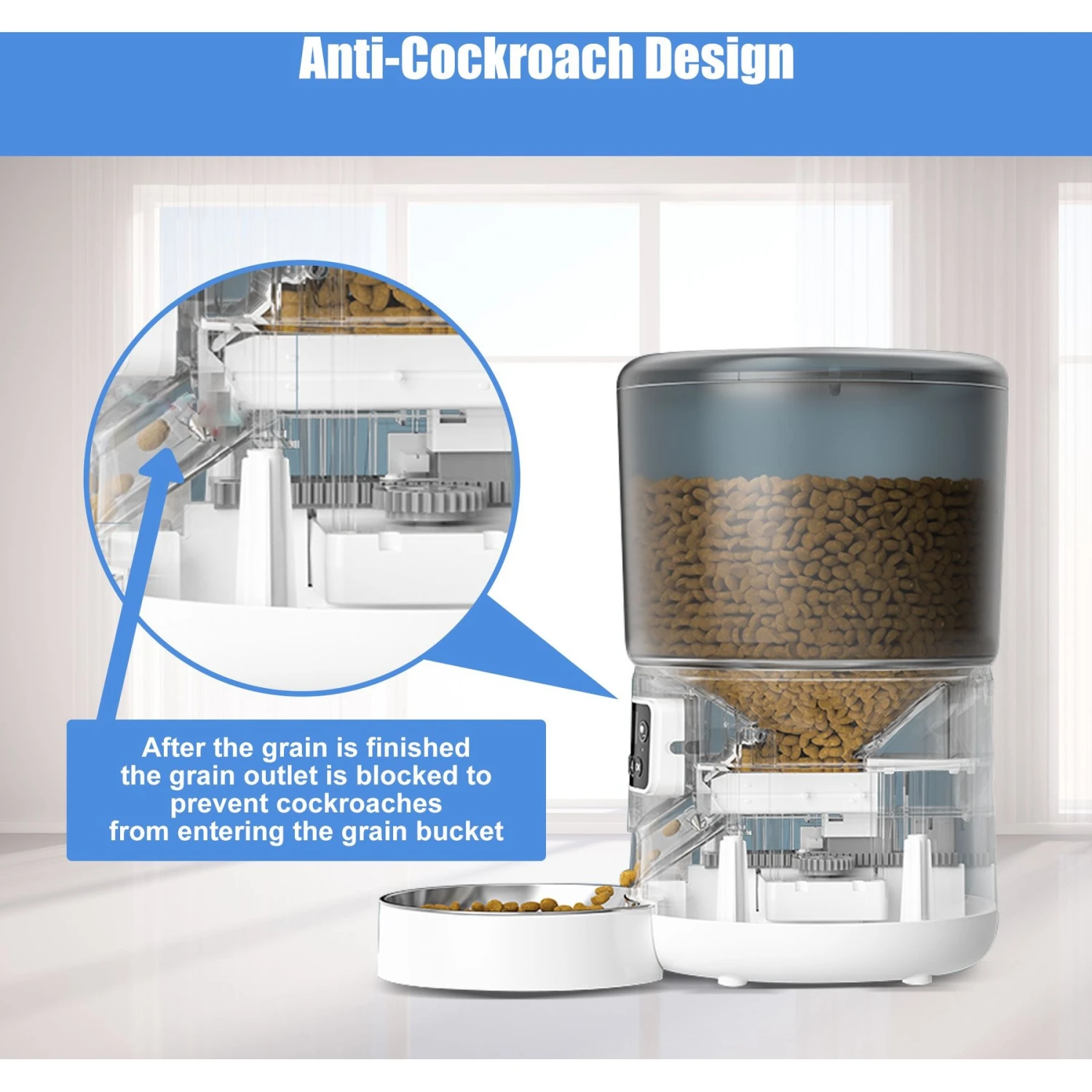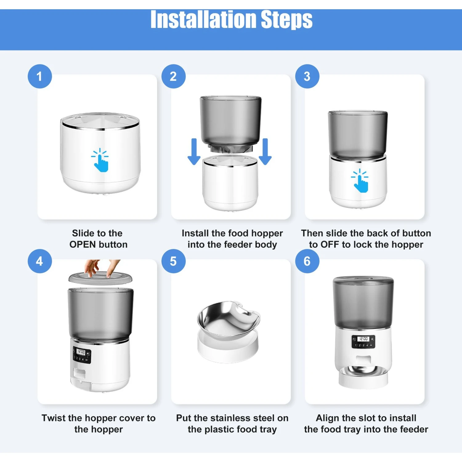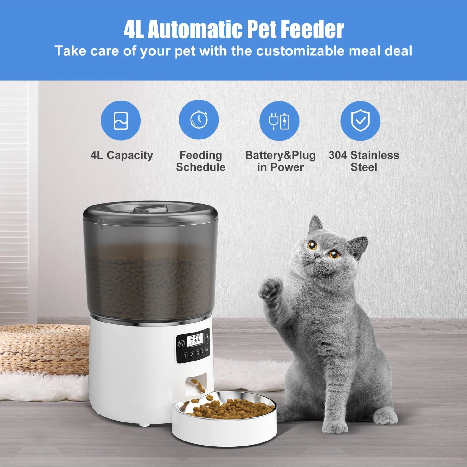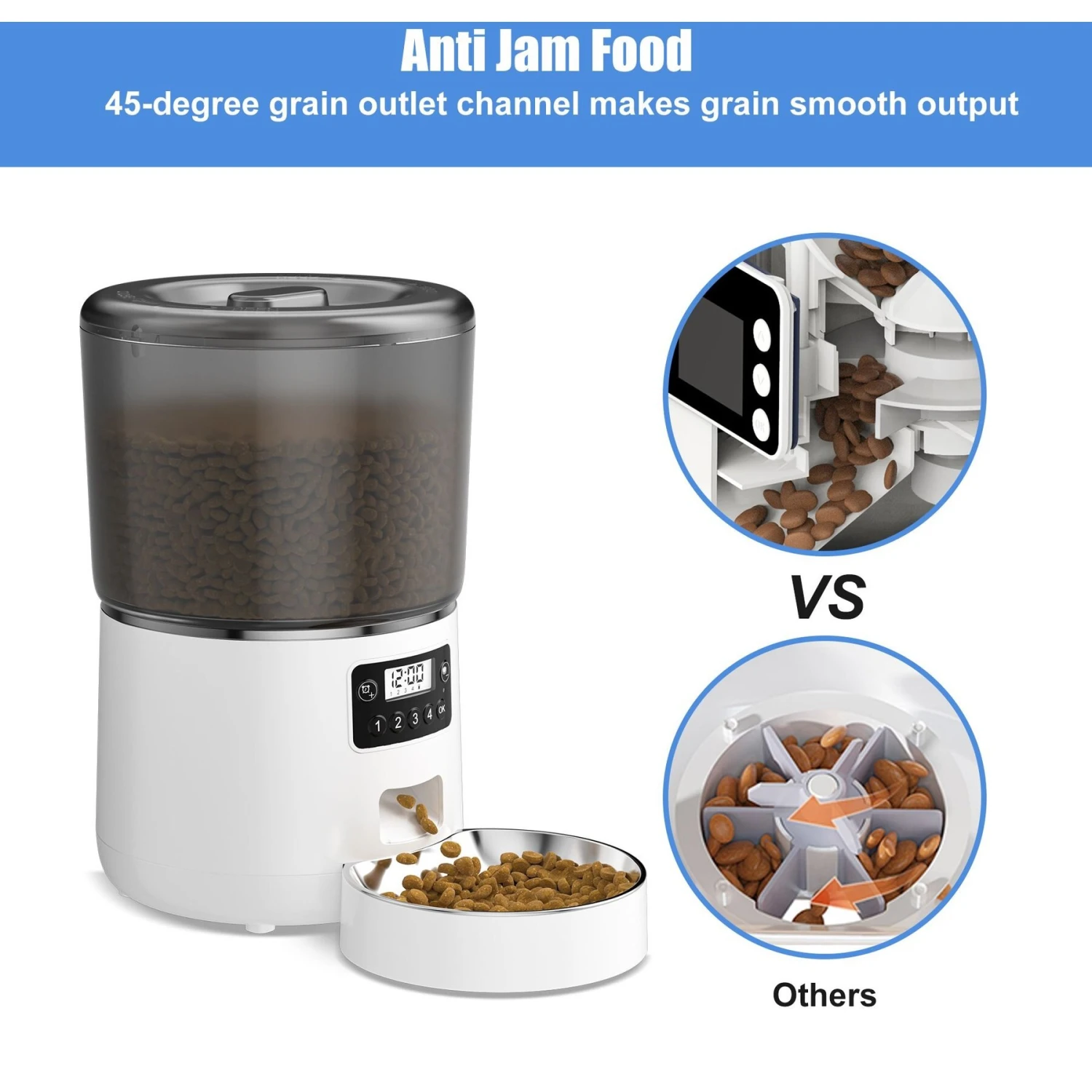 Bueteka Smart Feed Automatic Programmable Anti-Jamming Food Design Timed Cat Feeder, 4-lit