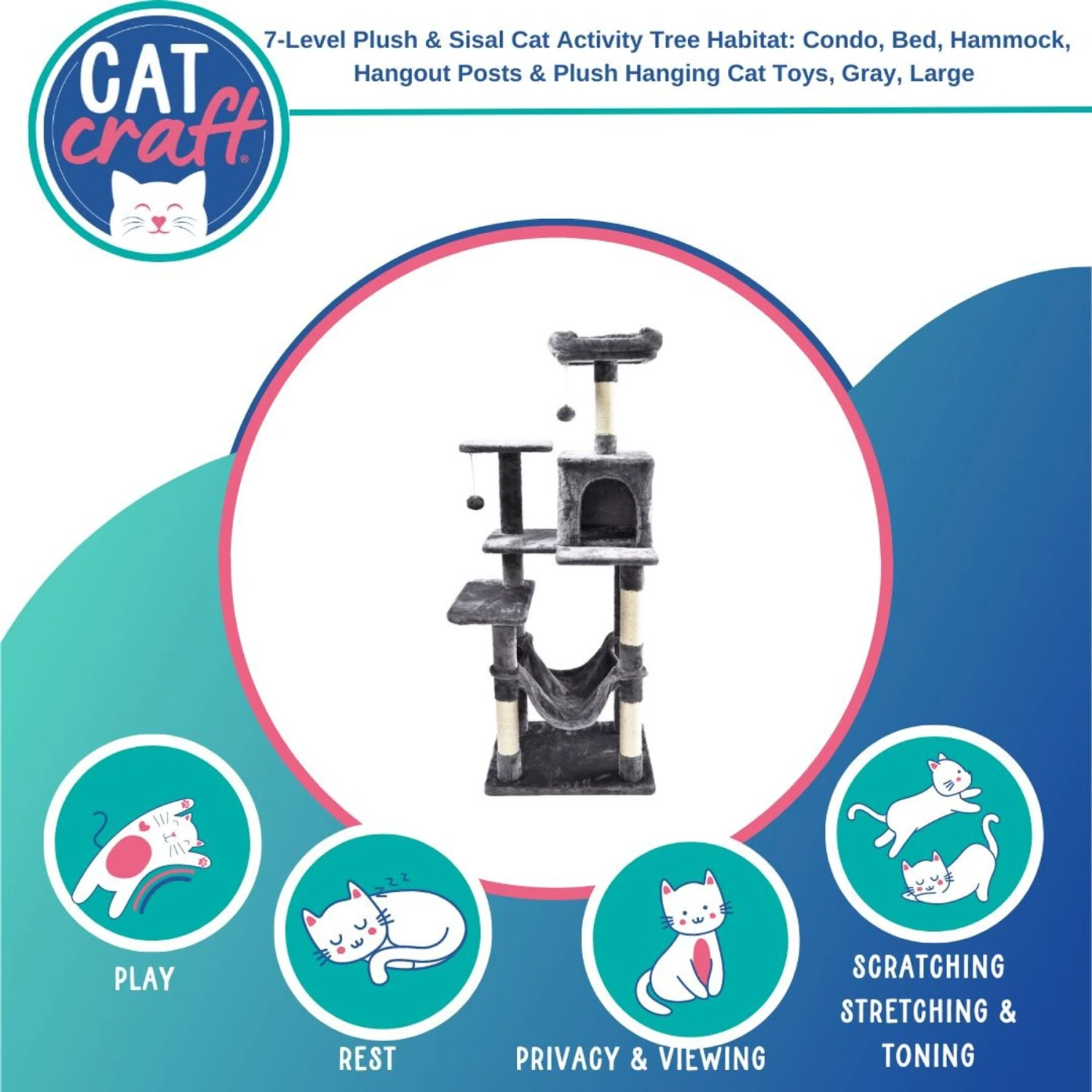 Cat Craft 7 Level Plush & Sisal Cat Activity Cat Tree Habitat, Gray, X-Large