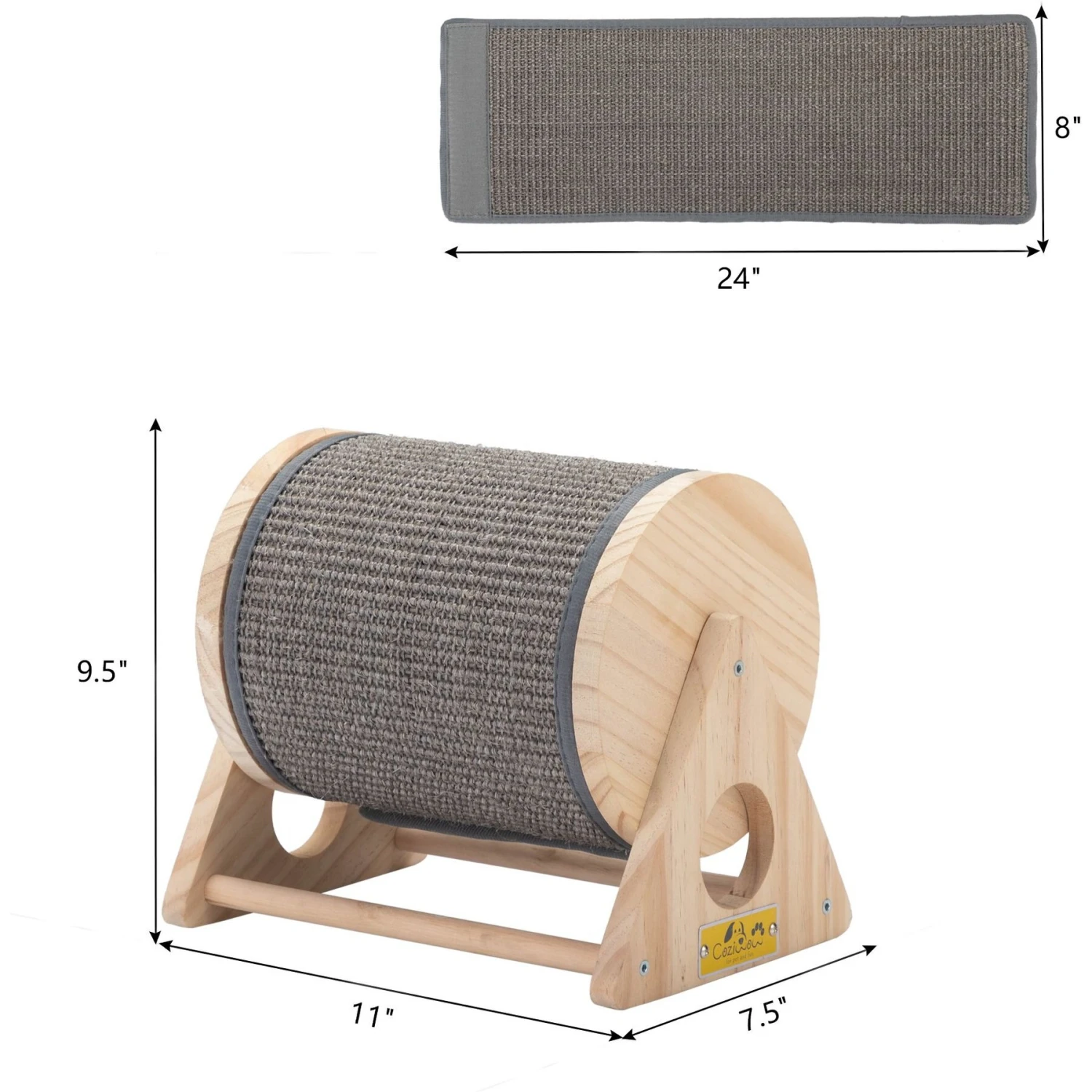 Kee your feline friend occupied with Coziwow Rotatable Cat Scratcher Post with Catnip! This rotating scratching post can be spun up and down and captures your pal’s attention with the included bells. Supported by a sturdy triangular base, your medium-sized cat or kitten can romp, swat, and scratch to his heart’s content without you having to worry about it falling easily. The post itself is covered with two layers – an inner portion of tough jute rope and a tough sisal blanket that covers the exterior. You can even switch between these layers to give your cat a variety of scratching sensations. Each layer is tough and tear-resistant, so even your toughest scratcher can have a go at it. Plus, if your furry friend loves a bit of ‘nip, this post comes with a pack of catnip you can easily sprinkle onto the post to encourage a feisty bout of playtime!