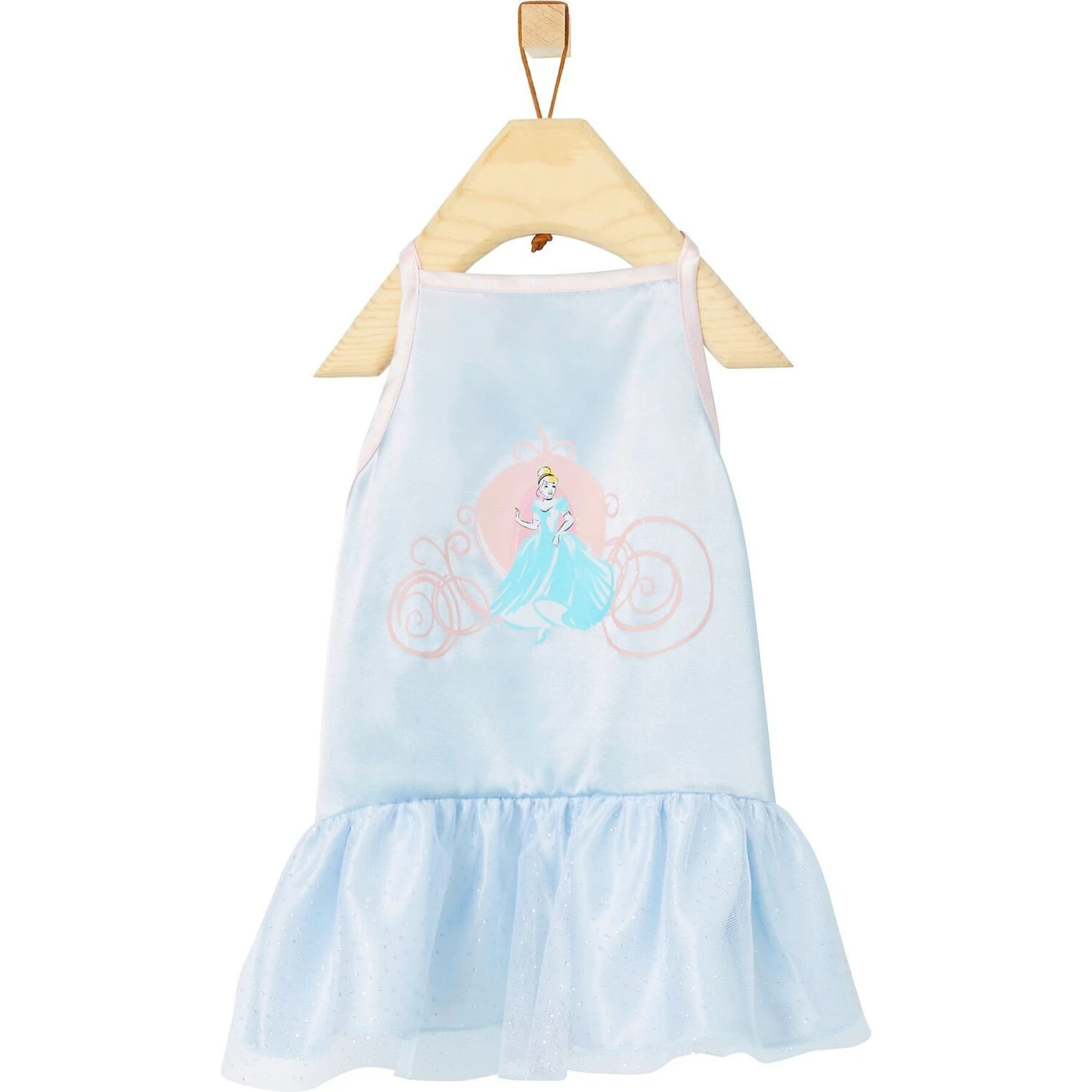 - Pet dress with glitter-dotted tulle, blue satin fabric and screen printed Cinderella is the perfect outfit fit for a princess. Available only at Chewy.