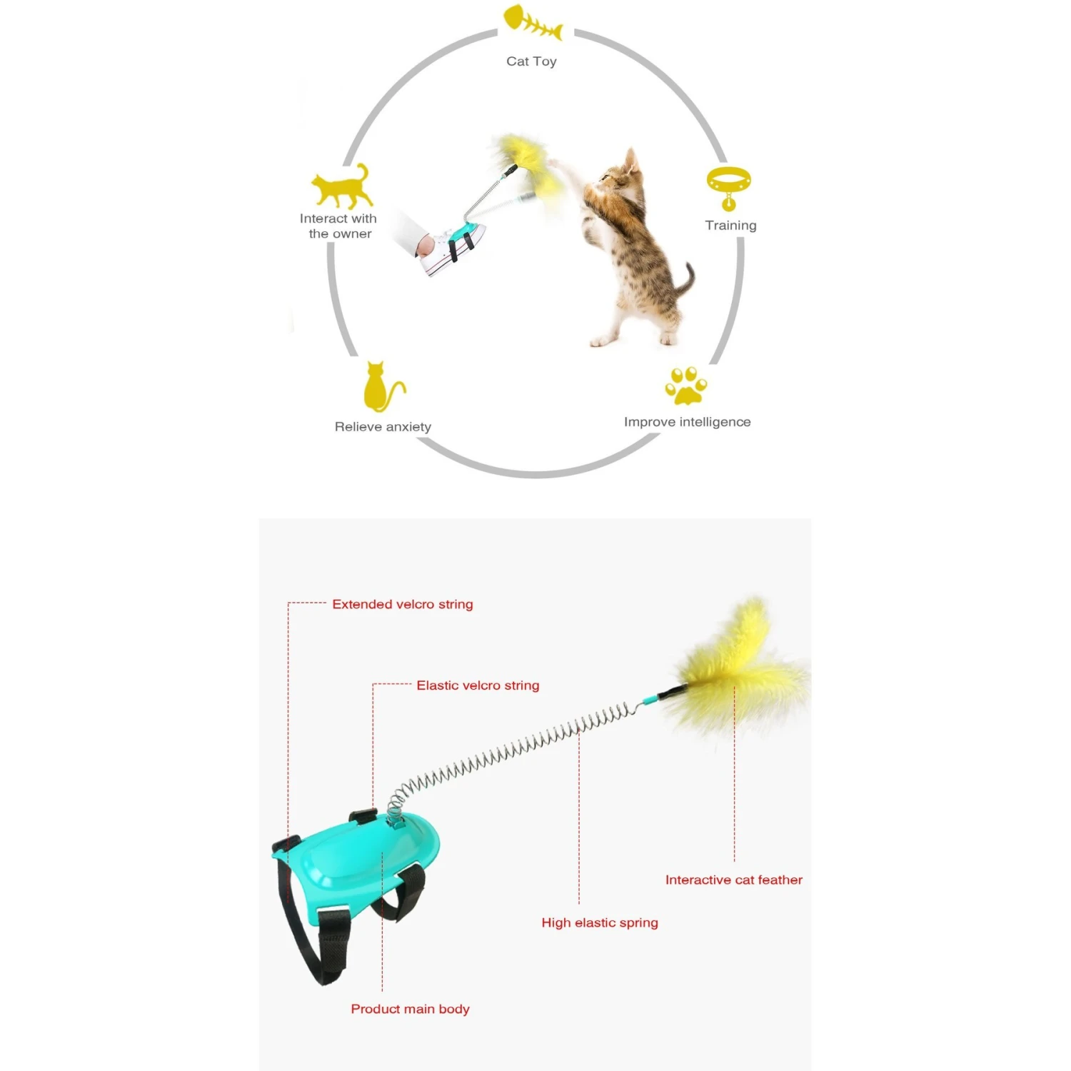 - Tie this toy to the top of your shoe for hands-free play!
