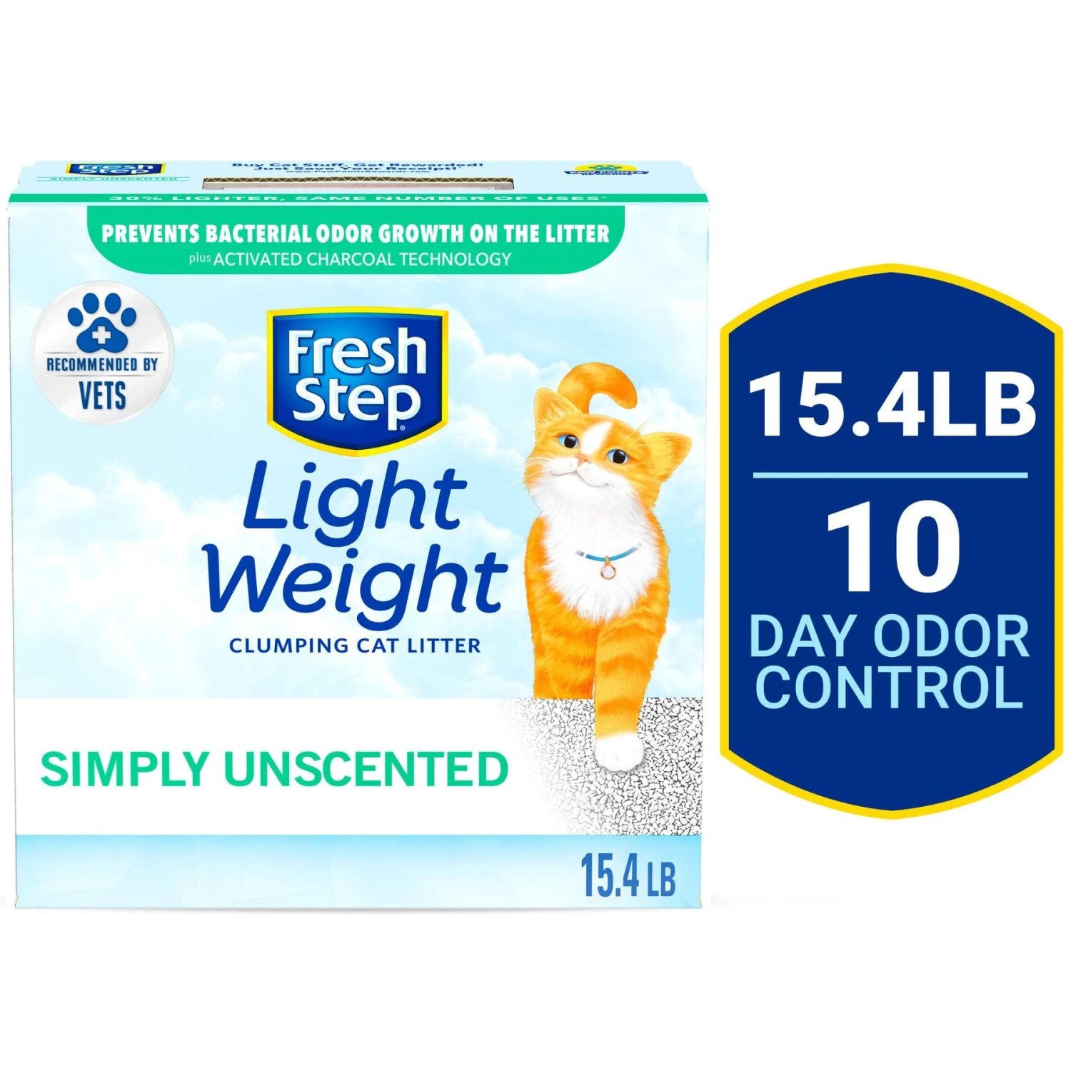 - Unscented cat litter has no added fragrances or dyes but still delivers 10 days of odor control.