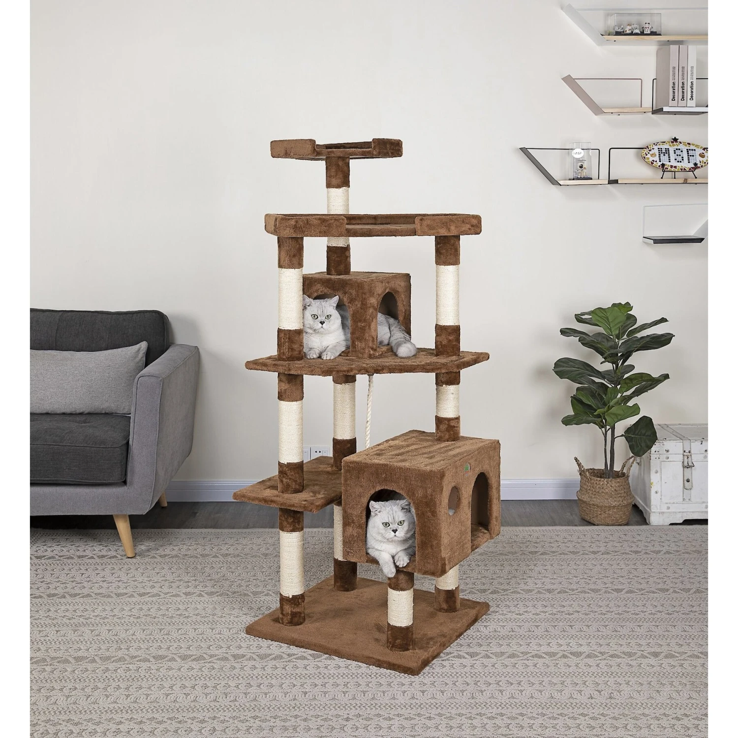 - Sisal rope-wrapped posts provide a safe outlet for your boy’s scratching habit.