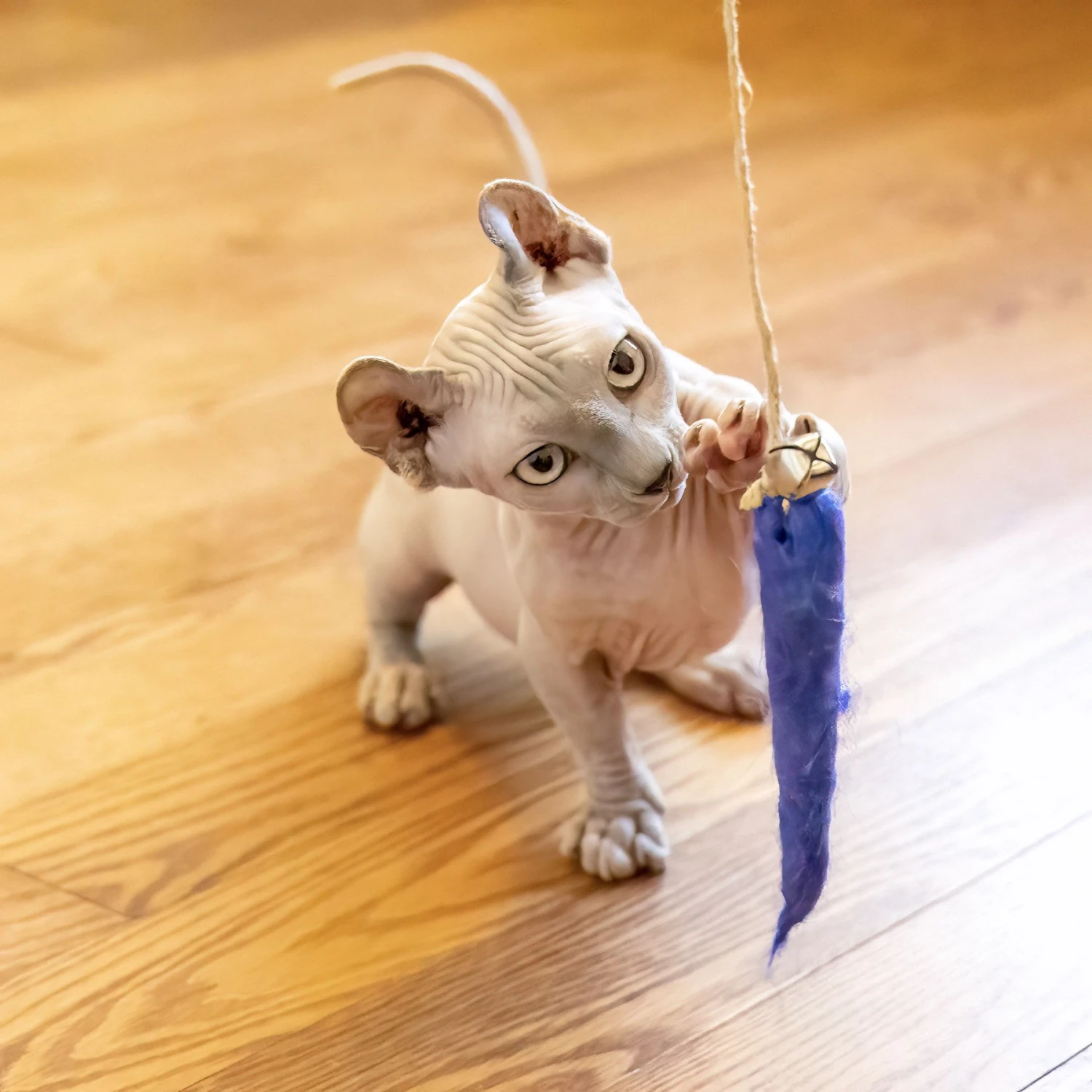 Keep your feline friend entertained with Honest Pet Products Eco Kitty Catcher Fishpole Cat Toy! Made in the USA, this energetic cat toy is an environmentally-friendly way to engage with your cat, as it is made with natural materials like wool, hemp twine, and bamboo. This completely handcrafted fishing pole toy is equipped with an intriguing wool worm with an exciting jingle bell, so you can “go fishing” in your home for hours of fun! With four feet of twine to work with, you can let your feline friend pounce, play, and kick at his leisure.