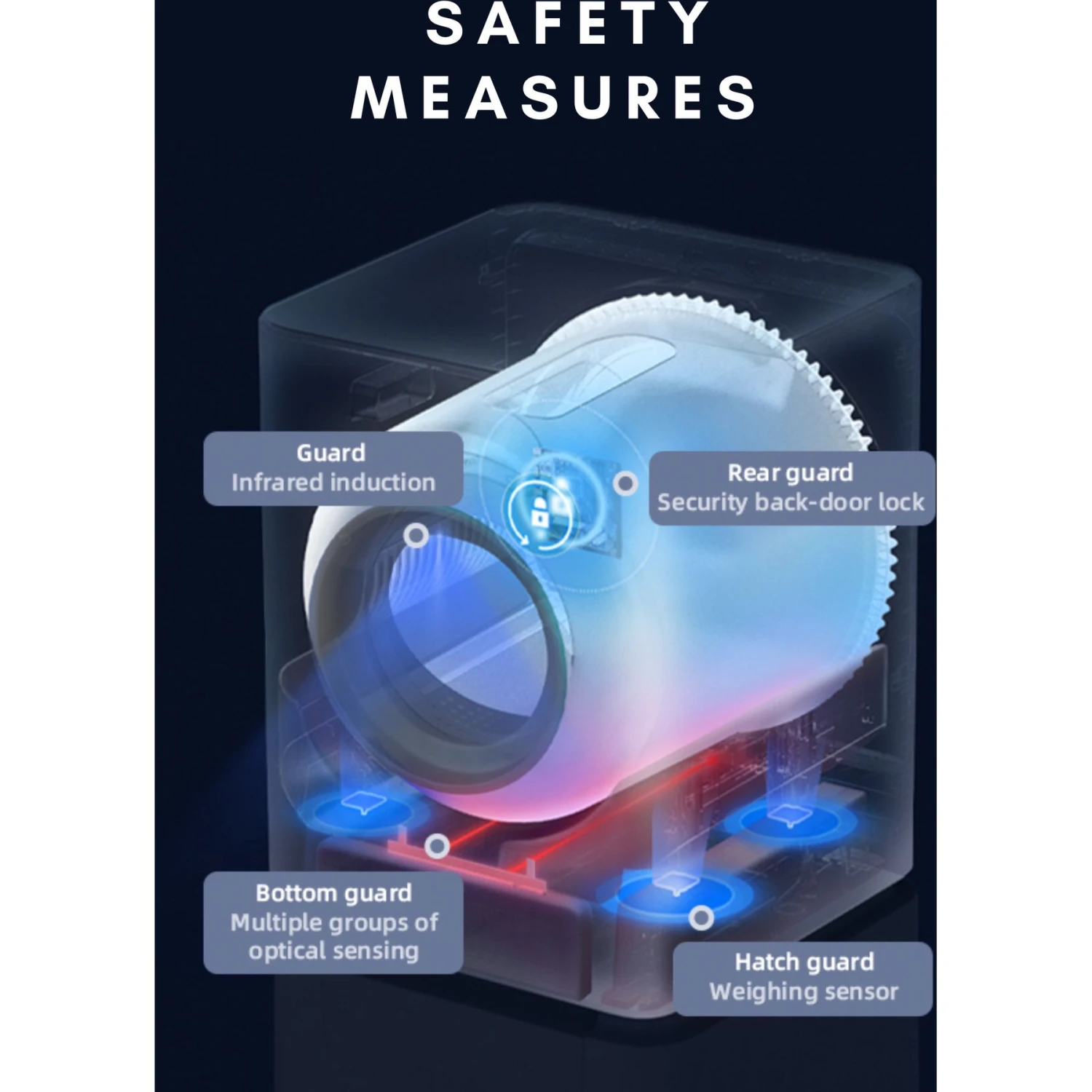 - For your cat’s safety, this litter box has safety and weight sensors that detect when your kitty is approaching—once these sensors are triggered during bathroom breaks, the machine will turn off. There are also infrared sensors and abnormality alarms for strange occurrences.