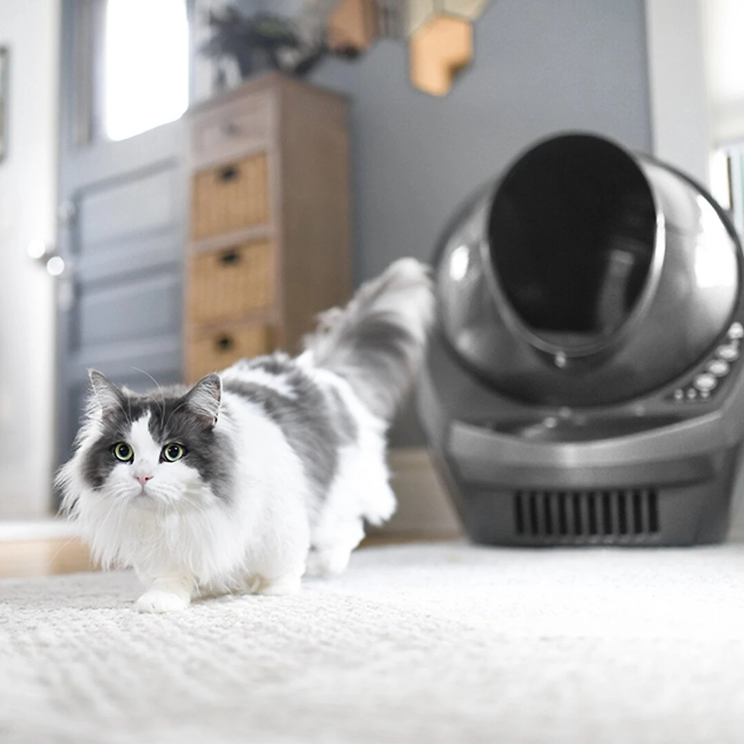 - Features an enclosed and carbon-filtered waste drawer to reduce unpleasant odors.