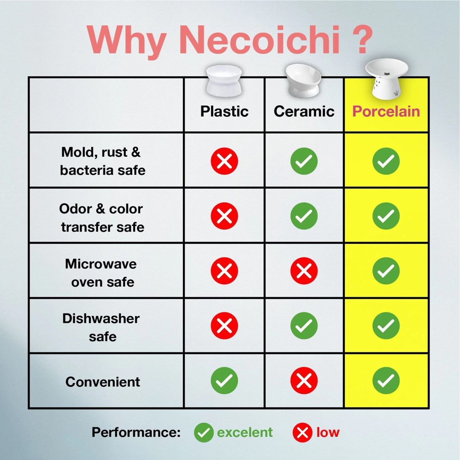 Necoichi Extra Wide Ceramic Elevated Cat Food Bowl, 2-cup