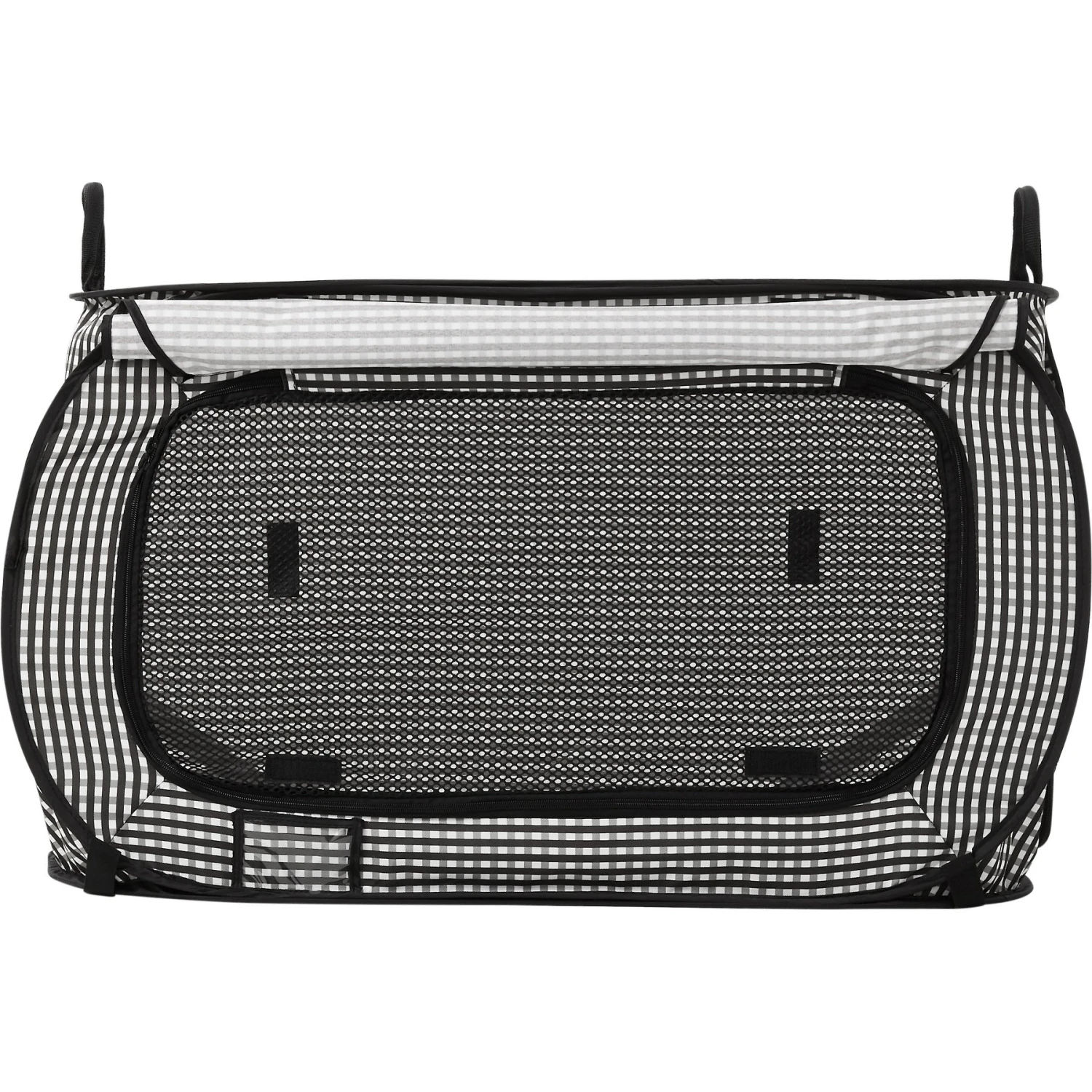 - Features two mesh panel sides for breathability and visibility, which can also be rolled down for privacy.