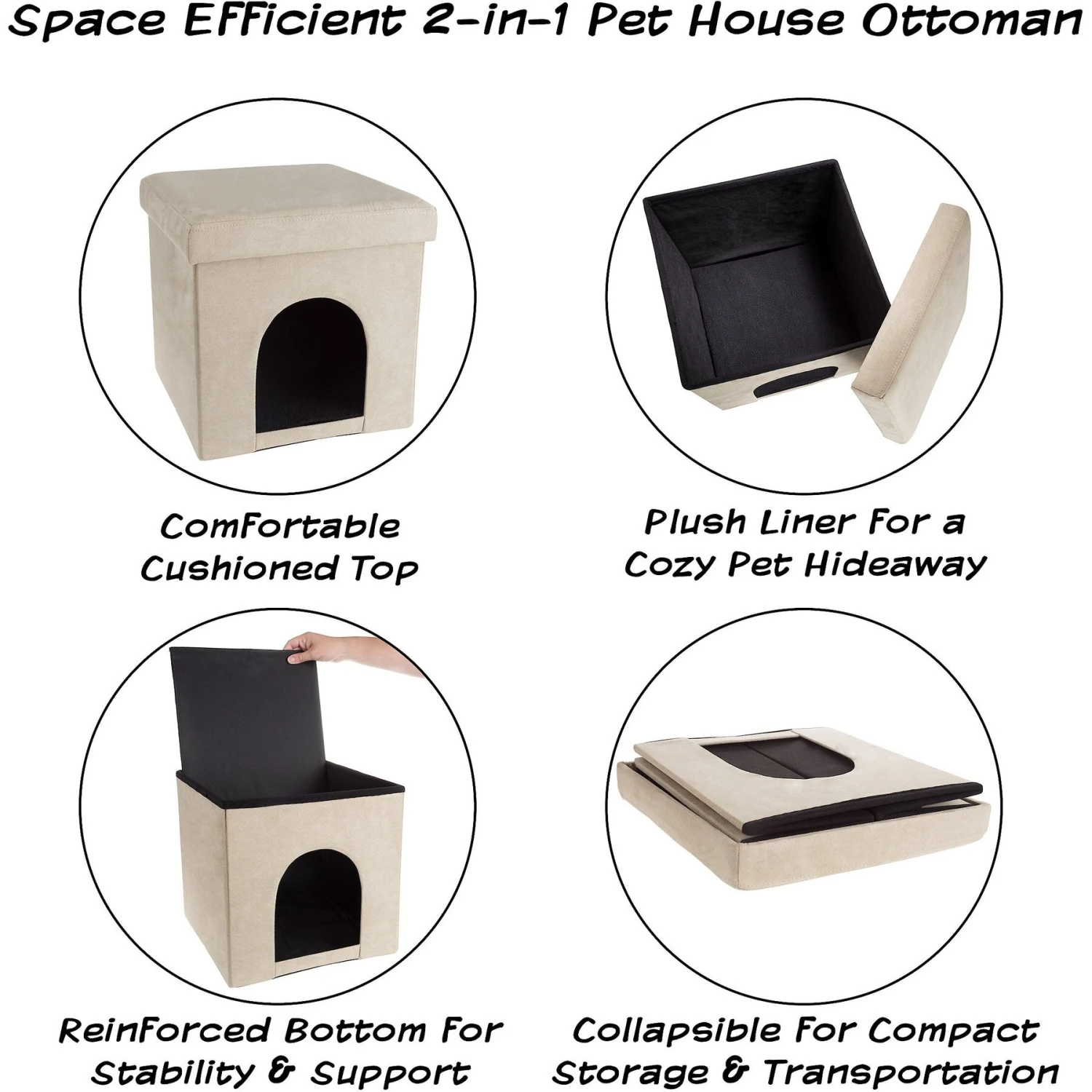 - Creates space for pets on top and inside.