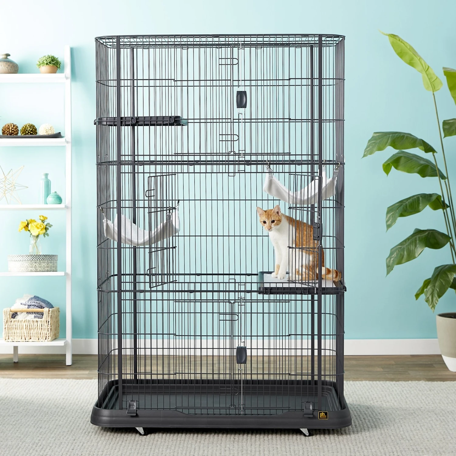 - Large base provides both a solid foundation and space to include toys, scratching posts or a litter box if desired.