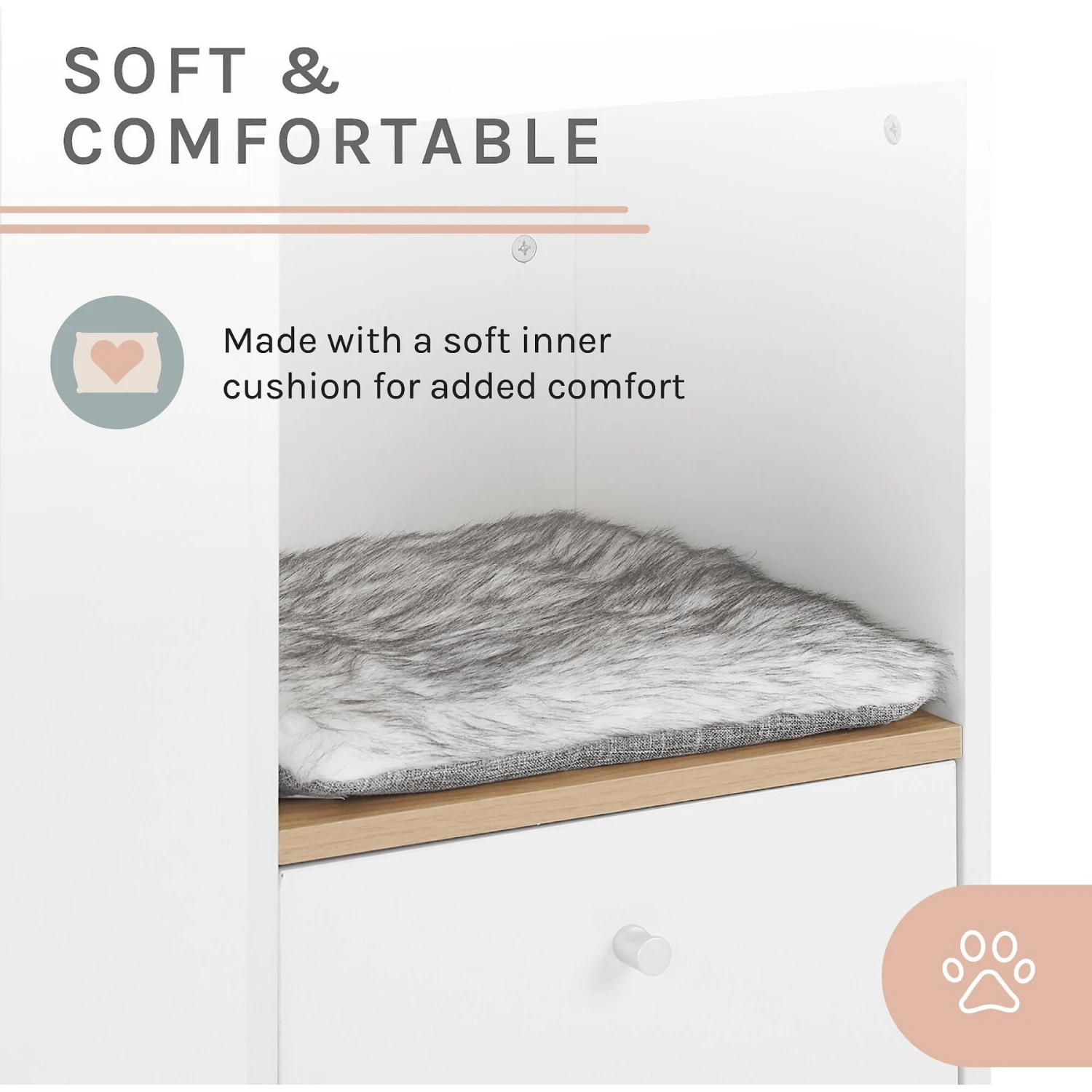 - The 2-in-1 design allows for storage and provides your cat companion with a comfortable place to play and rest.
