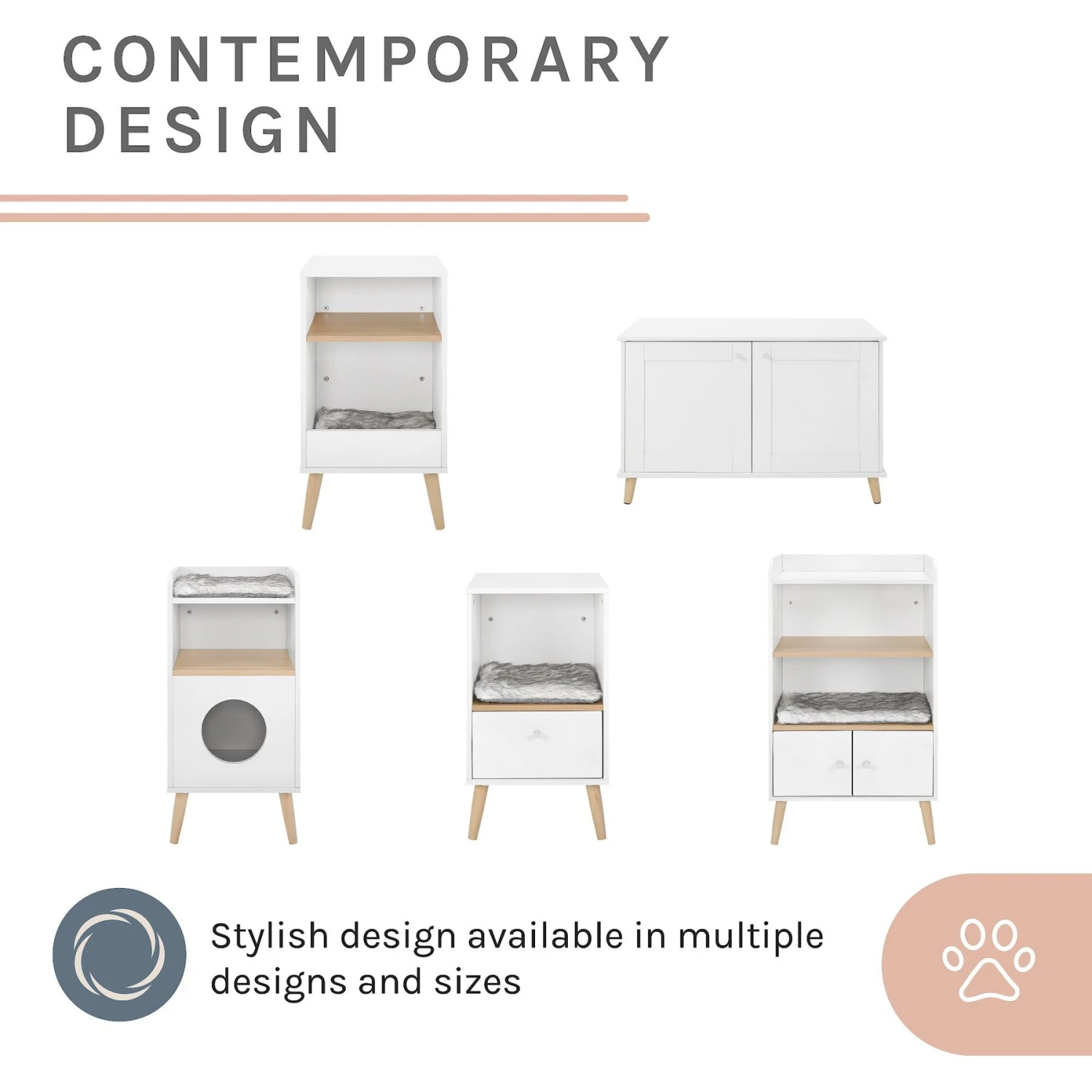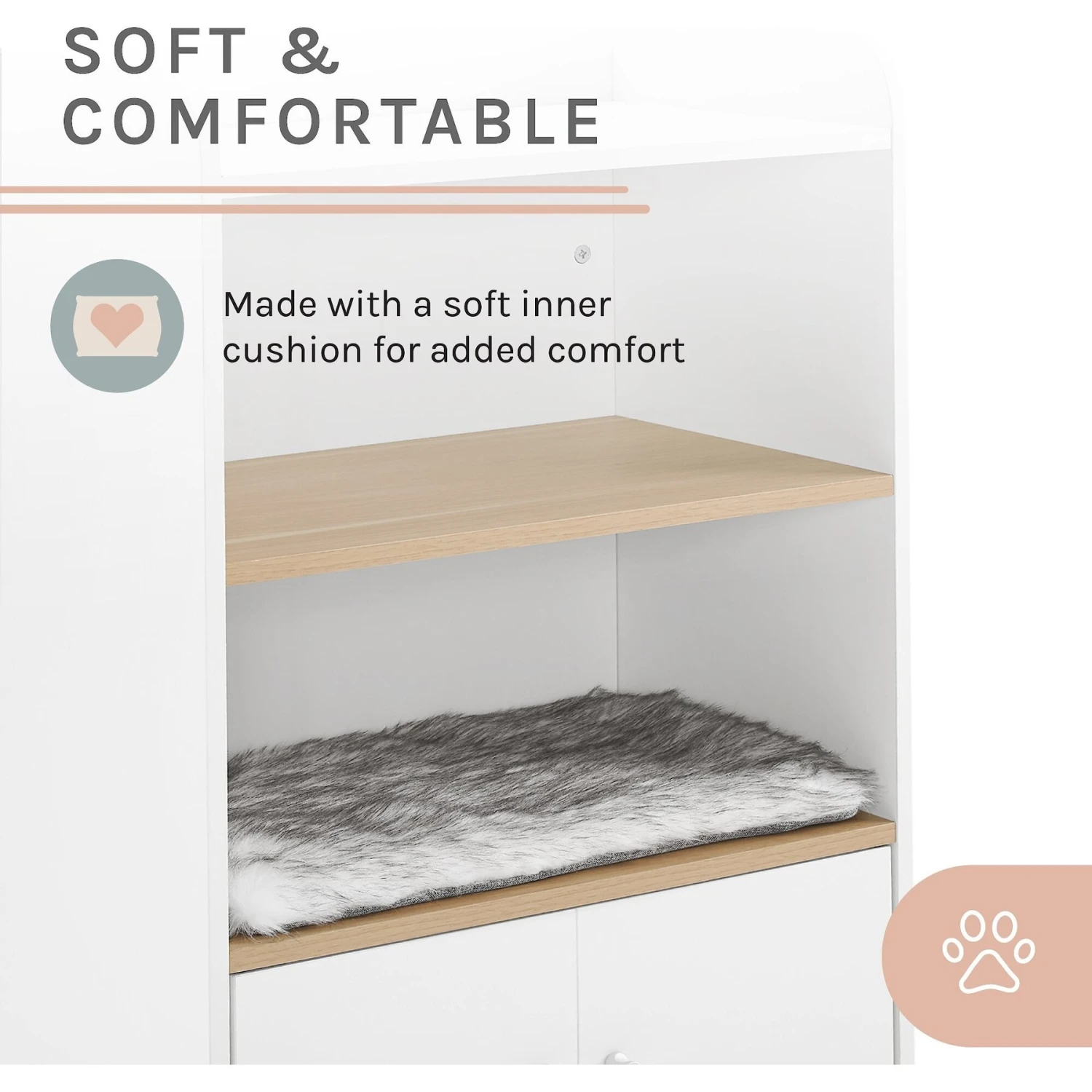 - The 2-in-1 design allows for storage and provides your cat companion with a comfortable place to play and rest.