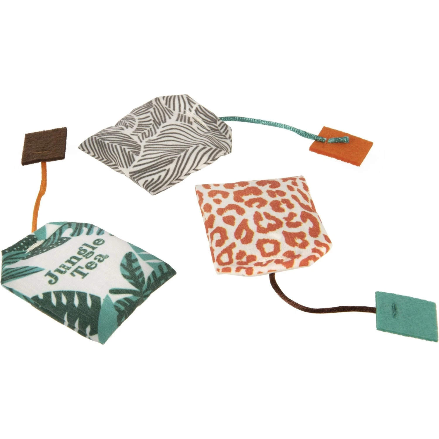 - Tea bag shape and felt tipped cord is purr-fect for batting and carrying.