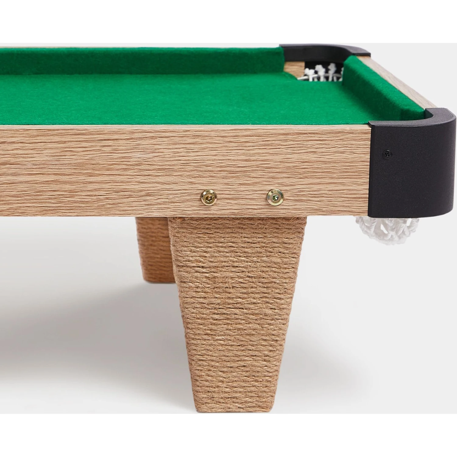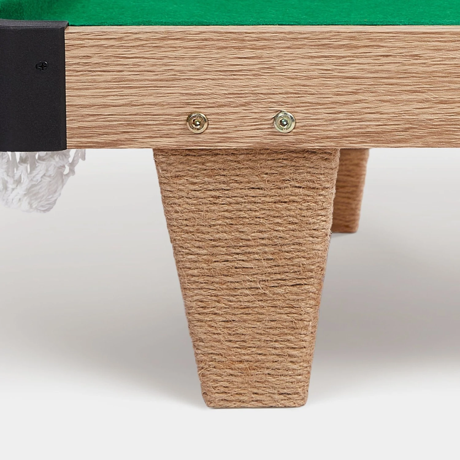 - This pool table for puddies comes with plenty of ways to play—each set includes 6 snooker balls, 2 cue stick feather wands and a felt-lined table with multiple scratching surfaces.
